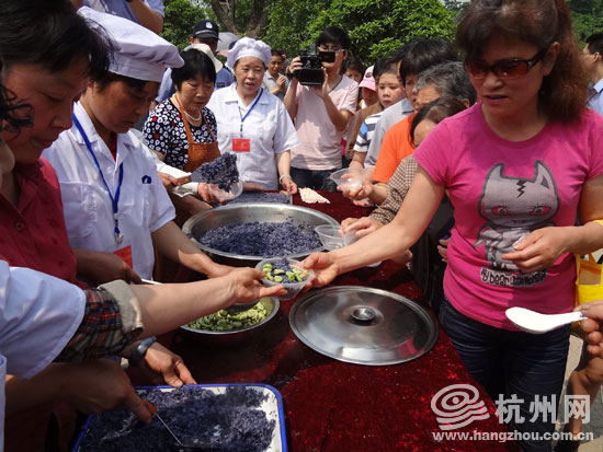 烧好的豆子和乌米饭一端上来就吸引了大批市民排队尝鲜。