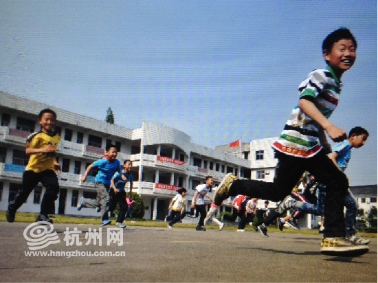 乐平小学的学生们在上体育课,缺乏器材只能练练跑步