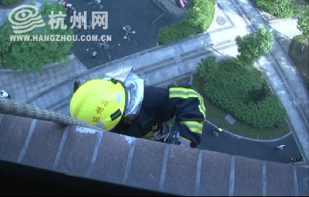 滨江大队的消防队员从11楼“空降”下去(图片由消防部门提供)