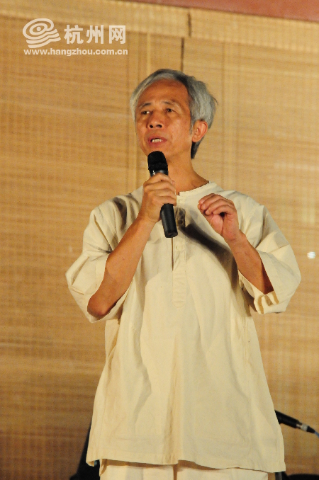初夏的夜晚,城市褪去了白天的喧嚣燥热,万松岭古朴青翠的松柏间,更传递出淡然疏朗的气氛。一袭白衣,满头银发,清瘦但矍铄的林谷芳,幽然出场。