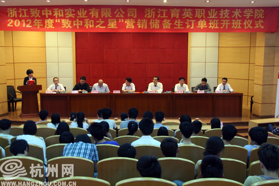 来自杭州建德的“中华老字号”企业“致中和”首次采取了这样的尝试。今天下午,他们与浙江育英职业技术学院合办的“营销储备生合作办”正式开班。