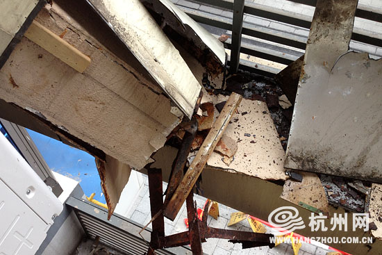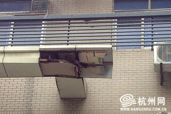 体育场路一居民楼外立面护栏突然掉落 6年前的装修部位大多腐坏