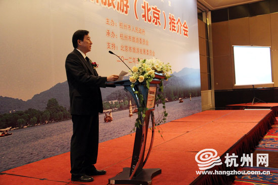 北京推介会以“东方品质之城、幸福和谐杭州”为主题,张建庭副市长致欢迎辞并盛邀北京市民前往杭州体验“美食之都、购物天堂”的品质生活,感受杭州西湖作为世界遗产的浓郁人文历史。