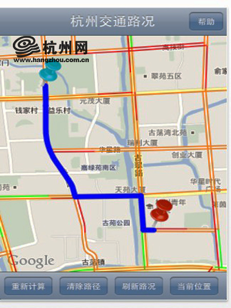这款手机应用软件是通过杭州交通信息的平台,同步实施路况信息。