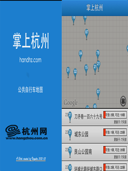 网友自制的“掌上杭州”公共自行车手机应用软件