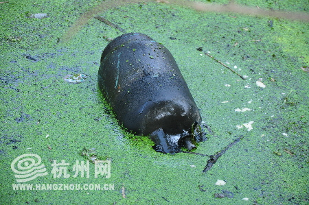 消防队员把煤气罐丢进旁边水沟里,终于老实了