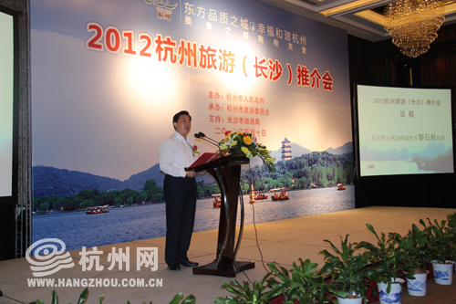 本次长沙推介会由杭州市旅委党委书记、主任李虹主持,出席本次推介会的长沙市人民政府副市长黎石秋表示,长沙和杭州地缘相近,两地旅游交往合作紧密,合作领域宽广,潜力巨大。希望长沙旅游界借这次推介会为契机,深化和提升两地旅游产业全方位、互利共赢,共同促进两地旅游业的繁荣和发展,特别是要动员长沙各旅行社深入了解杭州,积极包装长沙、杭州互通的旅游线路和产品,实现资源共享,客源互送。杭州市政府副市长张建庭表示,长沙和杭州的旅游合作前景广阔、优势互补、两地旅游界将会共同携手迎来更加宽广的发展前景。在推介会现场, 8家杭州品牌旅行社和长沙8家旅行社代表签署了合作协议,杭州还向长沙旅游界代表赠送了“三江两岸”旅游联票及杭州其他景点门票。