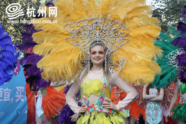 大巡游路线,从延安路武林银泰一路延伸至凤起路中山北路,1.1公里路段,上演了一场由各色异域风情女郎带来的热辣舞蹈。