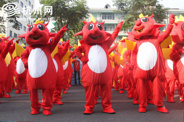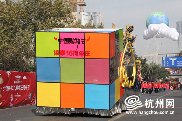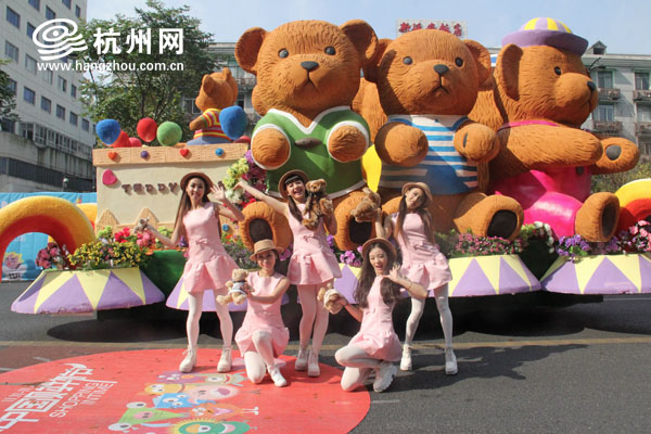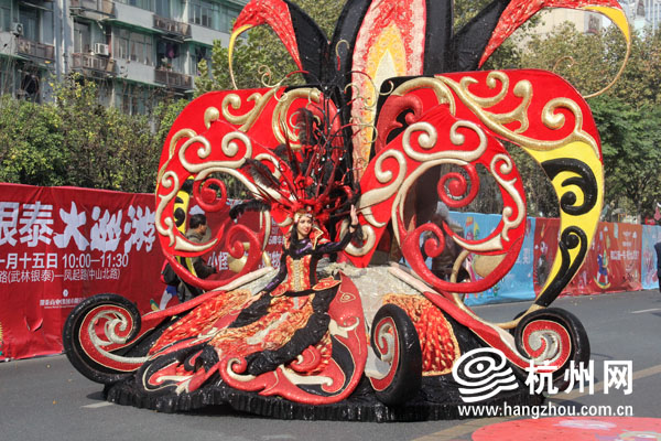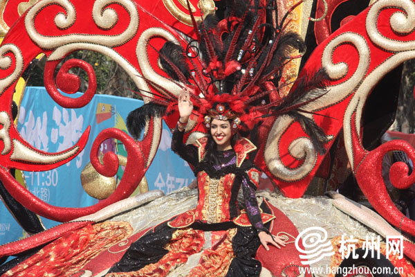 杭州网讯 今天上午,路过延安路的市民,会发现往日最繁华的路段并不是被车流占据,而是由一队花车,许多小怪兽和异国风情女郎组成的巡游队伍占据了。