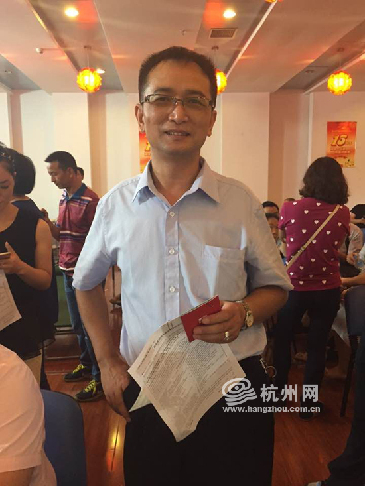 50周岁的沈晓东是一名老党员了,在献血队伍中不断接受同事关于献血的各种咨询,依然是一副明星的架势。一问才知道,原来他已经是一位累积献血量达到8000毫升的“献血英雄”。沈晓东说,他从2009年开始献血,平均每年要献六七次,他还是浙江省无偿献血协会的志愿者。