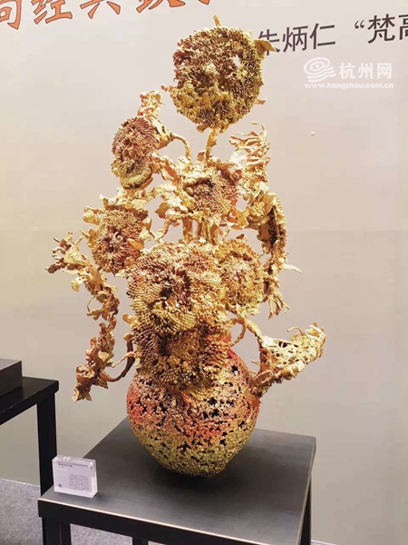 而就在今天(10月22日),中国当代铜建筑之父、熔铜艺术开创者——朱炳仁,也带着三座“梵高系列”铜雕作品《燃烧的向日葵》、《熔化的星空》与《熔化的梵高》,入驻杭州站梵高展,并与主展同期展出。