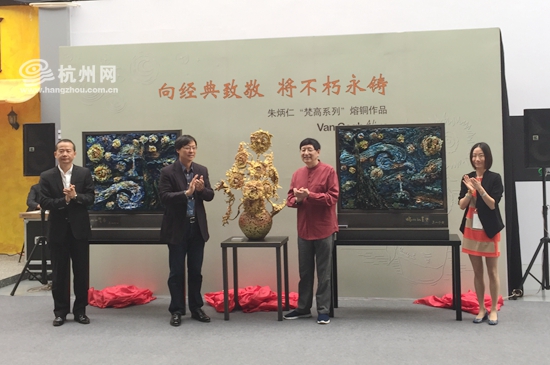 在发布会上,朱炳仁与主办方领导一同参与了作品的揭幕仪式。艺术是跨越时空的载体,朱炳仁表示,此次展览是一种特别新奇的艺术展示,是对艺术本身的诠释,也是对艺术家人生的历程的关注与思考。