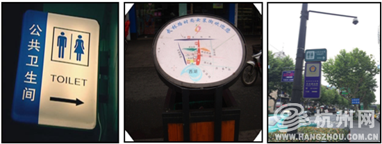 路灯杆、交通标志杆、果壳箱上都会有公厕的标识