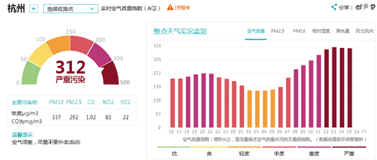 国家环保局数据 16:55分杭州属严重污染