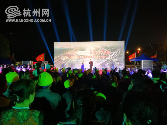 晚会现场,施工单位和沿线居民共唱共建歌