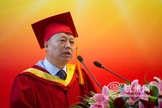 他勉励毕业生们:要勿忘初心,坚守梦想;重扬理想,走向自立;独立思考,走向明理;勇于担当,不负使命;不吝给予,实现价值;脚踏实地,铸造精彩,以浙传学子的自信、才华和大气去谱写人生与社会的精彩,以一己之孜孜努力,共同汇聚成浙传对于时代与国家的贡献与责任!