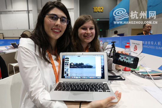 英国的Evelyn Mantoiu和Annemie Zimmerman是两位来自英国的女孩儿,爱美是女孩的天性,杭州西湖的美给他们留下了太深的印象。翻看手机,太多的西湖照片,“这张西湖的照片是我最喜欢的,那天是我第一次去西湖,太美了。”Evelyn Mantoiu说,这次峰会是她第一次来杭州,西湖边中西合璧的建筑和自然风光让她流连忘返,“如果我下次来中国,一定会再来这里,还要尝试多走走。”