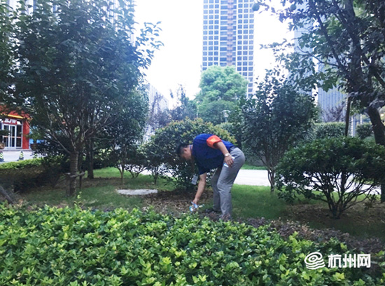 行走在路上的时候,许先亮和同事们总是四处张望。我们一个分神的时间,他就失去了踪影,过一会手里拿着垃圾就从树丛中钻出来了。“我们自己出去巡查就能第一时间发现问题。”许先亮一边仔细观察着周围的情况一边和我们解释着,“遇到自己能干的就干了,如果遇到自己解决不了的就第一时间派人解决。”