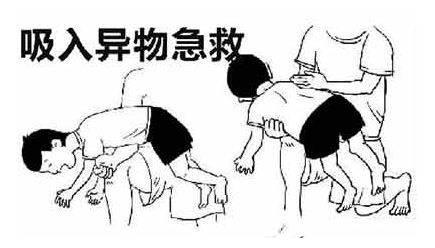 4.如果病人为小儿时,急救时救护者取坐位,让小儿面向前坐于救护者的腿上,然后救护者用两手的中指和食指,用力向后上方挤压小儿的上腹部,压后随即放松,重复进行。对年龄稍大一点的小儿,可让其趴在救护者的膝盖上,头朝下,捶其背部。两名救者时,可1人将小儿倒提离地,1人用手拍背,掏咽部,可使异物迅速排出。