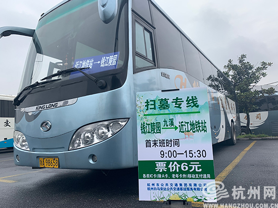 据了解,扫墓专线的首末班时间:近江地铁站7:00~13:30;钱江陵园 9:00~15:30。票价:6元。