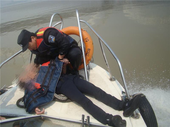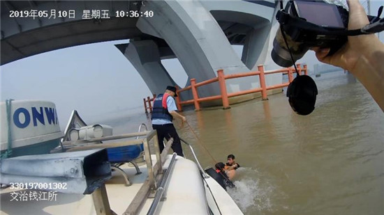 上午,交通(水上)治安分局民警在九堡大桥水域成功救起一名跳江男子。