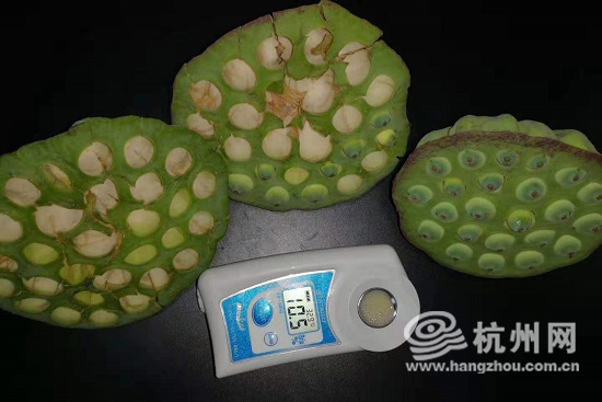 记者还了解到,水果莲从开花到采摘仅需要20天。当莲子微突出莲蓬,根茎呈90度弯曲的时候是最佳的采摘时期,此时的水果莲子食用口感最佳。