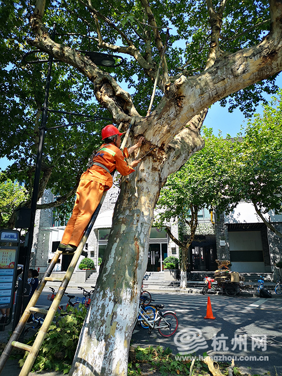 为了让悬铃木——城市绿色“卫士”能够更好的造福咱们老百姓,全市各城区绿化管理部门对悬铃木树体缠绕灯带的情况进行了多次协调和研究,下城区率先行动,为辖区内所有公共绿地上缠绕灯带的行道树进行“松绑”。