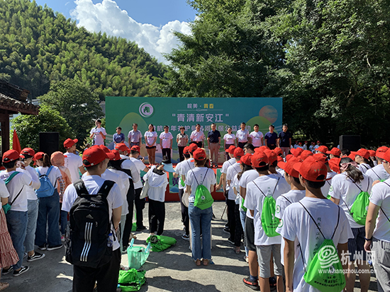 8月6日,由浙江团省委、安徽团省委指导,杭州团市委、黄山团市委、杭州市生态环境局、黄山市生态环境局、杭州市教育局、黄山市教育局、黄山市新保局主办的“青清新安江”杭黄青年共护母亲河环保公益行动在新安江源头黄山市休宁县启动。杭黄两地青年志愿者等100余人参加了启动仪式。