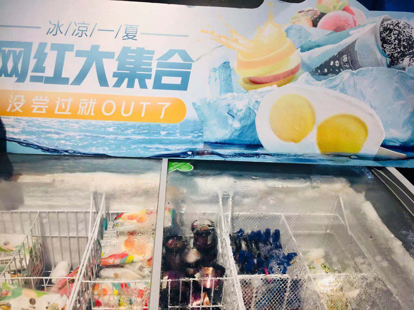 在解百的盒马鲜生,摆放各式“网红雪糕”的冰柜被摆放在显眼的位置。在冰柜上方,还专门放置了一块“网红大集合,没尝过就OUT了”的广告板,吸引顾客前来购买。在那停留约10分钟,记者就看到有好几位年轻顾客先后打开了冰柜门选购了心怡的雪糕。