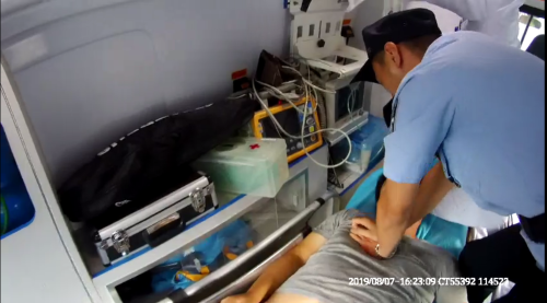 120急救车到达现场,汪晓锦配合医生将男子合力抬上救护车,在救护车上,汪晓锦继续为男子进行心肺复苏,整个过程持续近20分钟,直到男子被送到医院急救室中。