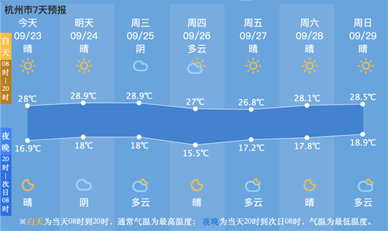 今后几天(24-30日),杭州虽然最低气温在16-19度,但最高气温普遍有27-29度,入秋可能还要再等等,但季节转换的进程已经拉开,秋意已经渐渐显现出来了。