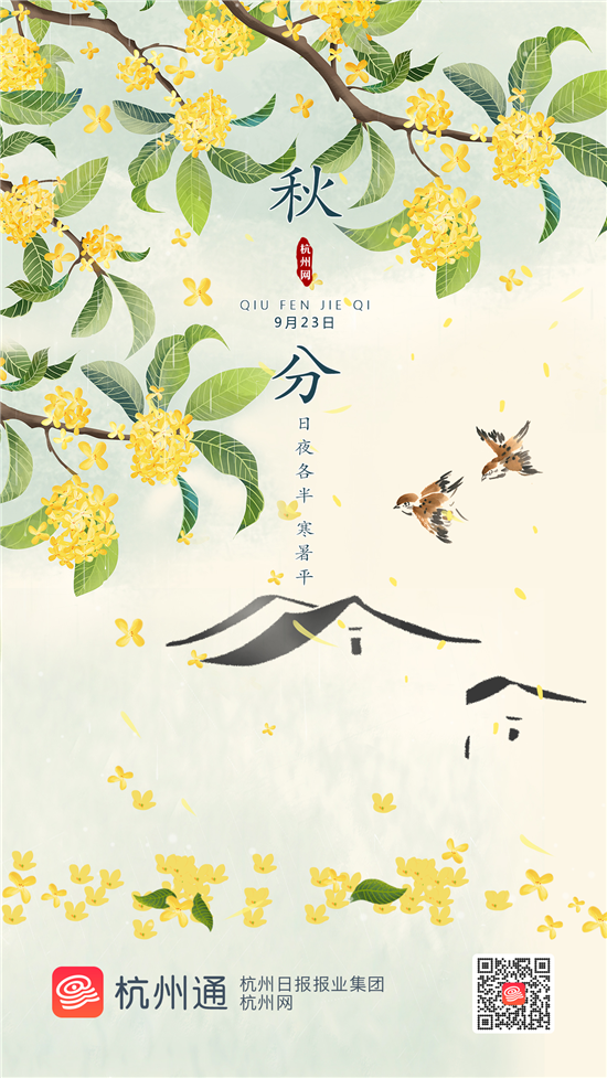 今天是24节气中的“秋分”,“秋分”时节阳光几乎直射赤道,昼夜平分,秋分过后,太阳直射点继续南移,北半球逐渐昼短夜长。“秋分”节气也是杭州由夏转秋(历史常年),季节转换的时期。