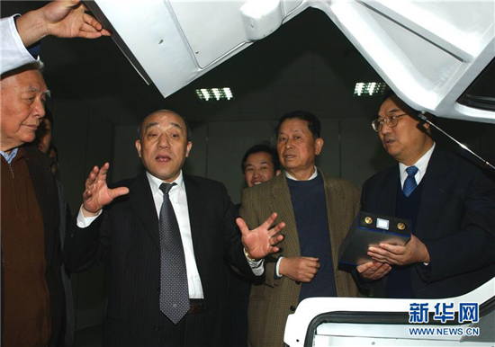 鲁冠球介绍电动汽车的情况。(图片来源:新华网)