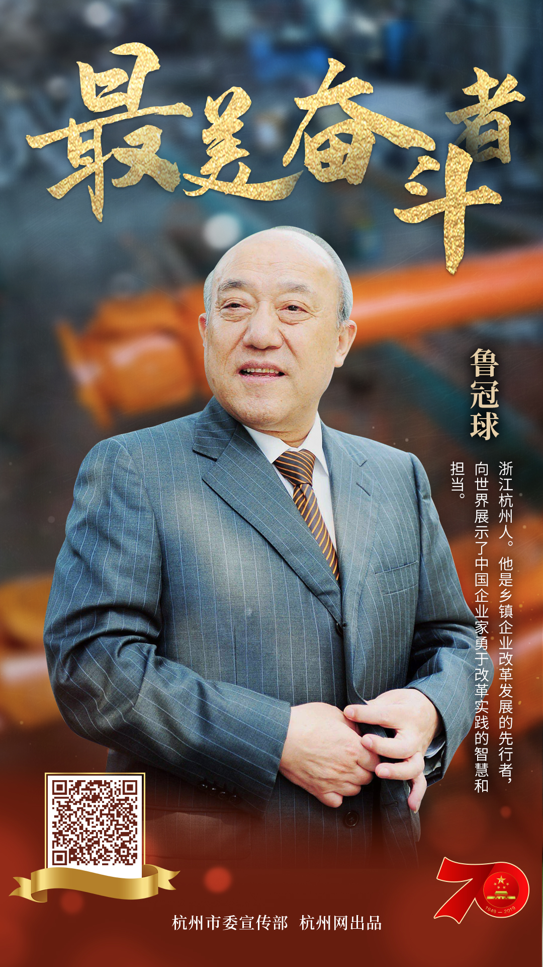鲁冠球,被誉为中国企业家中的“常青树”。 他是一位土生土长的中国企业家代表,源自乡土、没有受过正规的大学教育,但脚踏实地、百折不挠,依靠近半个世纪的奋斗,修炼出一套属于他的“商业体系”,并引领了万向集团从一个小乡镇企业,发展成国内最大民营企业之一。