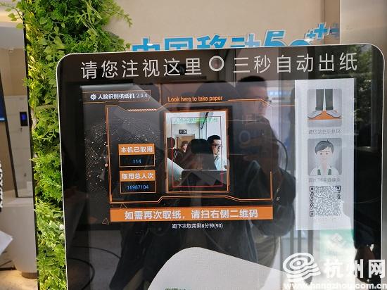 在洗手台右侧有一个自动出纸装置,市民注视屏幕指定区域3秒后即可领取纸巾,设备采用人脸识别技术,短时间内一个人只能免费领取一次。另外,如果市民如厕前随身携带的物品较多,还可以免费使用洗手台左侧的“人脸存包柜”,操作步骤只需要两步即可。