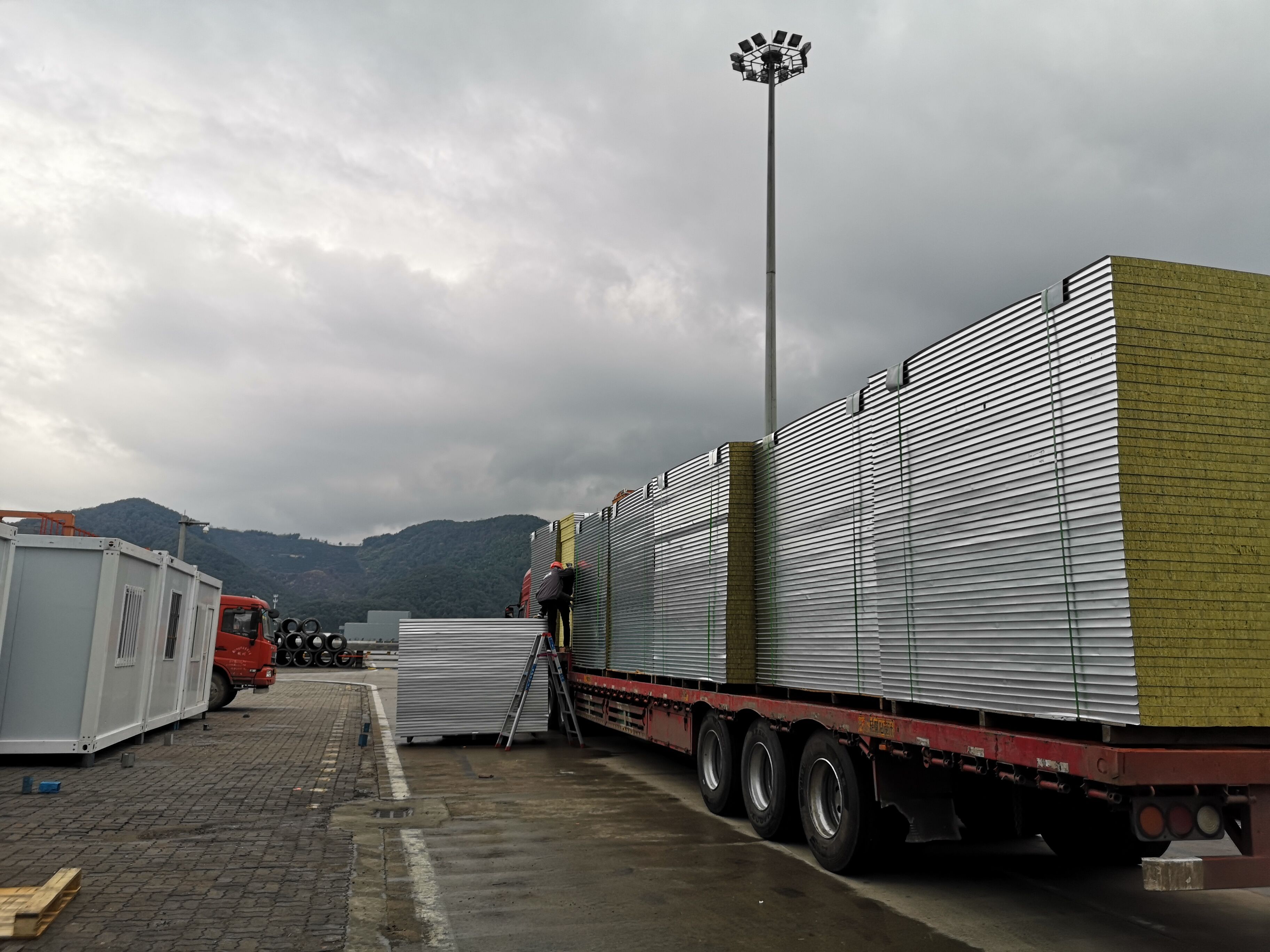 从东洲运往武汉,运输时间大约16个小时。运输工人从现场发回了视频,送达的复合板卸下后,在施工现场外围进行组装,完成组装后再送到施工现场。