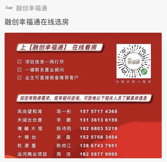 杭源里、融创城、锦宁里、风尚望和湾、天阅云合源、悦融湾、森与海、江南壹号院、云潮府、融望之城、十锦台、璞樾大观等。