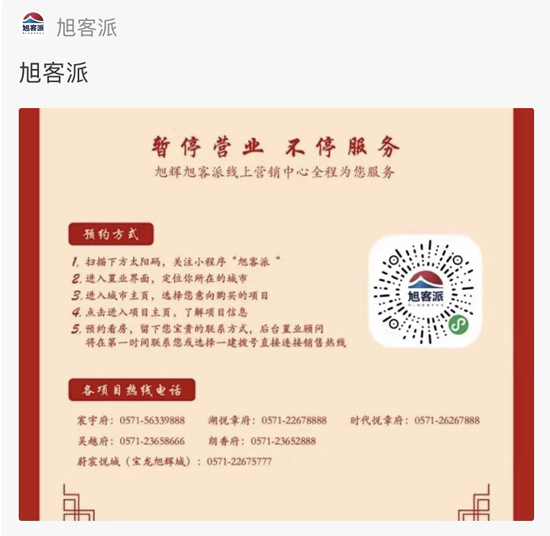 杭州市住房保障和房产管理局发布《关于进一步做好住保房管领域新型冠状病毒感染肺炎防控工作的紧急通知》,通知要求全市各房地产开发项目售楼现场、房产经纪机构门店、房产估价机构经营场所在2月8日(正月十五)之前一律暂停营业,暂停举办人员聚集的各类销售、促销等活动。其他企业在此之前也不得组织室内集会、业主联欢等活动,防止交叉感染。