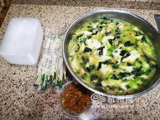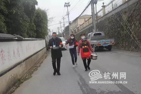 2月4日下午5点,杭州市临安区锦南街道杨岱村妇女雷桂芬、张新红、周贤珍、许美根等身系围裙,与家人捧着一盆盆热腾腾的可口菜肴,拿着电饭煲、碗筷送到村道入口4处执勤防守的卡点,为执勤防守一线的村党员干部志愿者,送上亲手烹制的暖心晚饭。