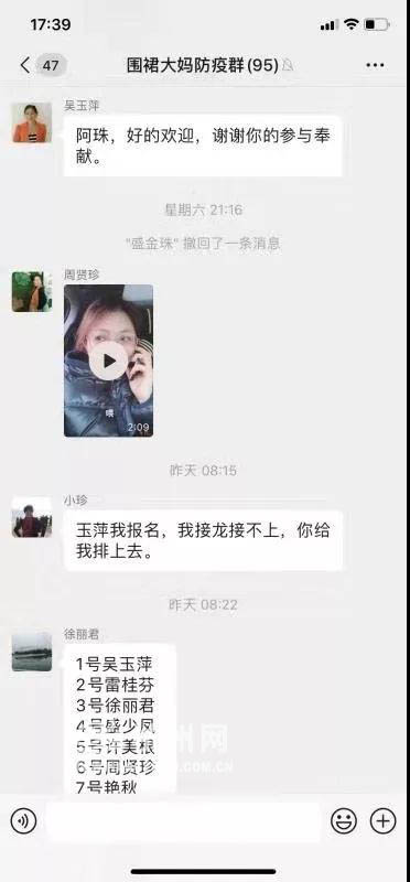 为做好防控一线人员的后勤保障,杨岱村妇联开设了“围裙大妈防疫群”,号召全村妇女参与防疫抗击战,在疫情阻击战时期,接龙轮流为一线执勤人员送饭菜。微信群建立当天,就获得了20多位“围裙大妈”的响应,目前“围裙大妈”队伍已经扩大到了38人。大妈们纷纷拿出自家最好的食材,用自己最佳的手艺,用心为一线执勤人员当好后勤。