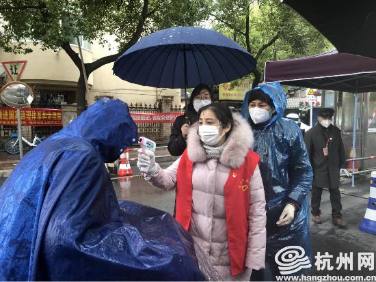 疫情就是命令,防控就是责任。2月6日,虽然天气不佳,但防控工作依旧不能松懈。在杭州各个社区里,不少志愿者依旧顶风冒雨地忙碌着……