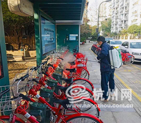 在杭州,大家最熟悉的“小红车”也已准备好迎接返岗市民。杭州公共自行车公司已将前期“冬保”车辆进行全面消毒,并投入运营,共计5000辆。据悉,结合当前租用量,路面小红车总量将控制在35000辆左右,并每天安排人员进行全覆盖式消毒。