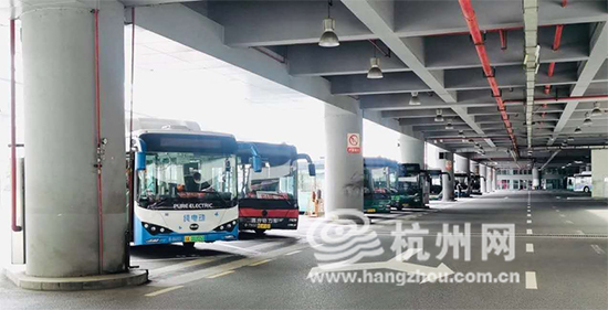 在杭州东站等待发车的公交车