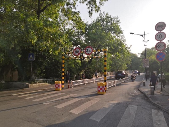 就在这个月,市市政设施发展中心决定,首次在老德胜桥东侧限高架安装,在隔离墩限宽的基础上,从高度上也对车辆进行了限制,加大对老桥的保护力度。很快,限高架安装好了,这是一种活动型限高架,设置限高为2.5米、宽4米,从高度上降低货车驶入的概率。