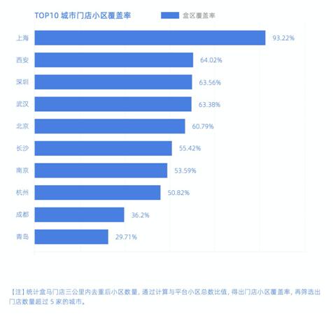 贝壳找房通过分析全国23个城市发现,除考虑到商业分布外,盒马门店分布与小区的空间分布表现较强一致性,上海覆盖率最高、西安弯道超车深圳成为全国第二,而武汉、长沙、南京、杭州、成都等新一线城市在城市创新,产业结构等软实力发展迅猛,近年来盒区覆盖率显著提高。