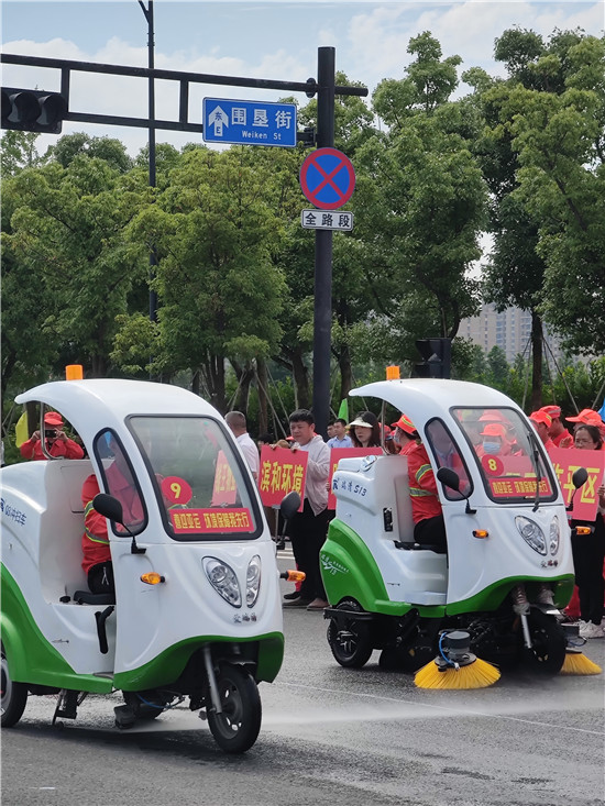 扎扫帚、扫马路、洗护栏、驾驶机械车清扫路面……6月1日,杭州市城管局在钱塘区围垦街幸福北路举办了一场环卫行业职业技能比武大赛,来自杭州14个区、县(市)城管局以及在杭从事环卫清扫保洁企业的20支参赛队近200多名环卫职工参加活动,一线环卫工人们使出浑身解数展示行业风采。