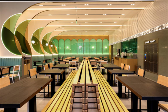 受钱江新城与日月建筑风格的启发,Shake Shack万象城店运用独具特色的融合风格进行设计,营造出传统文化和现代生活的平衡与和谐。