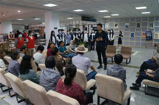 摄影展现场,浙江图书馆还举办了视障读者“人像”主题的非视觉拍摄教学,众多爱心市民前往活动现场,作为模特和他们共同完成人像摄影作品。在志愿者的描述下,视障者了解被拍照人的身高、姿态以及他们之间的距离,然后选择合适的角度拍摄。而“人像”模特也会与视障读者描述自己的外貌、穿着等。此外,普通读者也亲身戴上眼罩,在没有光的环境下尝试用触觉和听觉拍摄照片,体验“非视觉”摄影。