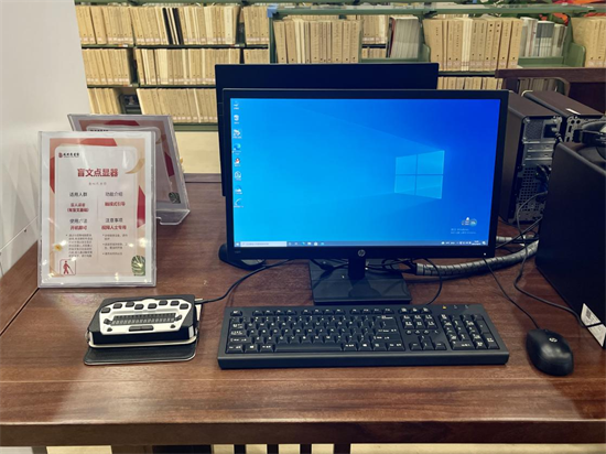 还配有台式电子助视器、远近两用电子助视器、一键式智能阅读器、便携式盲人阅读器、盲文点显器等新技术设备,便于不同视力等级、不同阅读需求的视障人士人使用。