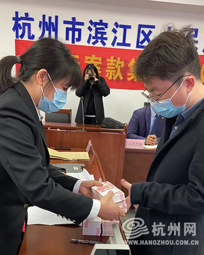 据悉,当天杭州市滨江区法院对涉及劳动争议、交通事故人身损害赔偿等8个案件,线上线下共同进行,共计发放款项124.24万元。